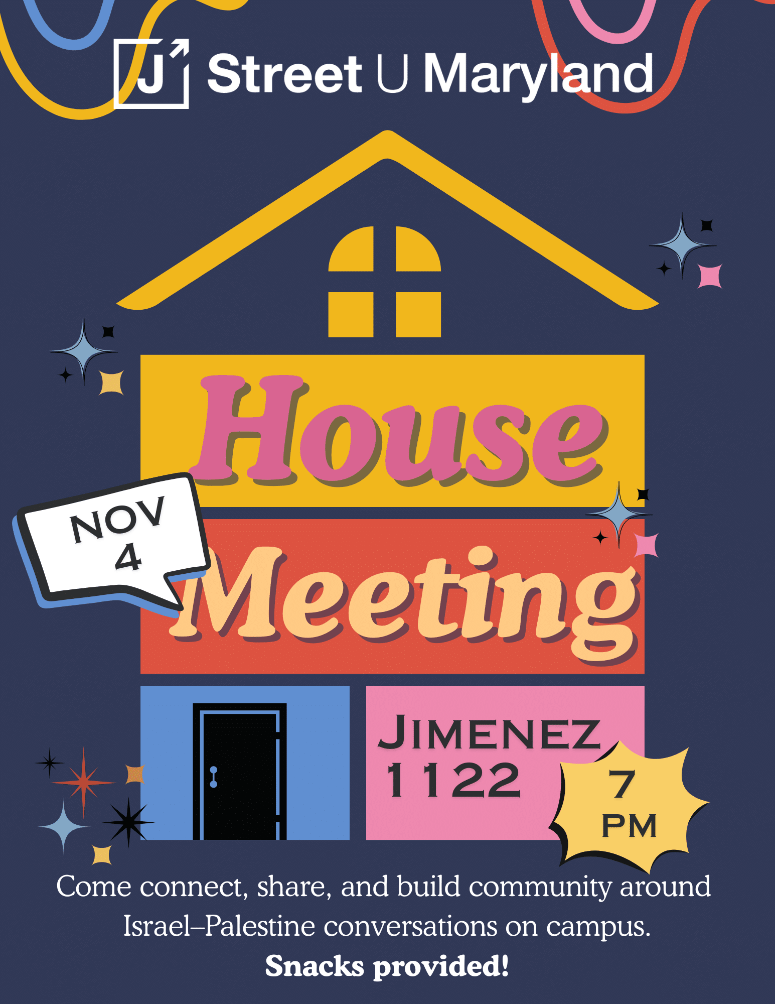 JStreet House Meeting November 4 @ 7:00 pm - 9:00 pm Come connect, share, and build community around Israel-Palestine conversations on campus. Snacks provided! Learn More